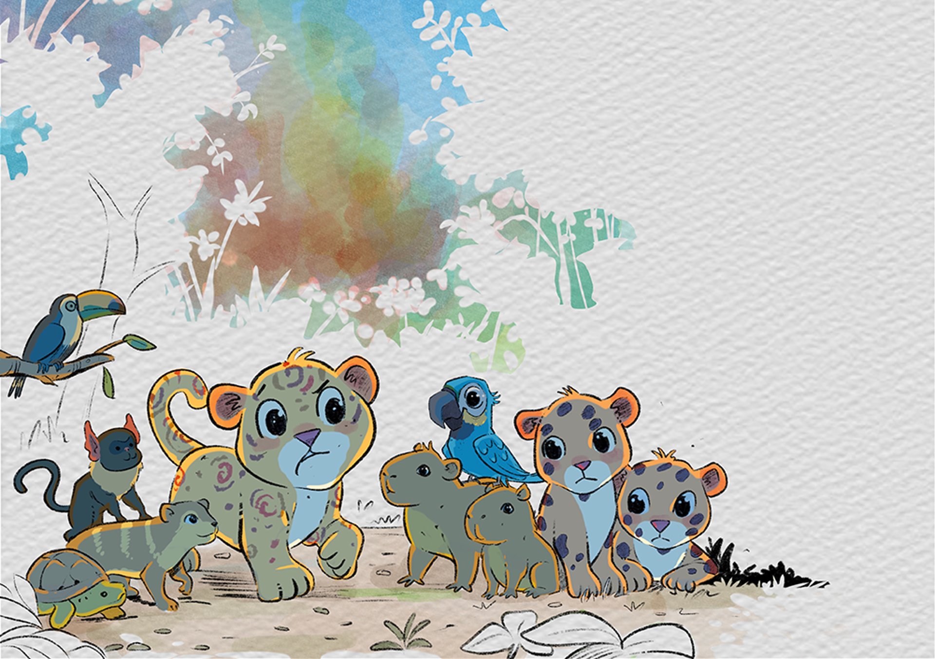 Em meio à imensidão da floresta, nasce uma personagem única e inesquecível: Ynaê, uma onça diferente de todas as outras. Suas manchas lembram pequenas estrelas espalhadas pelo corpo, como se carregasse o céu da Amazônia em sua própria pele.